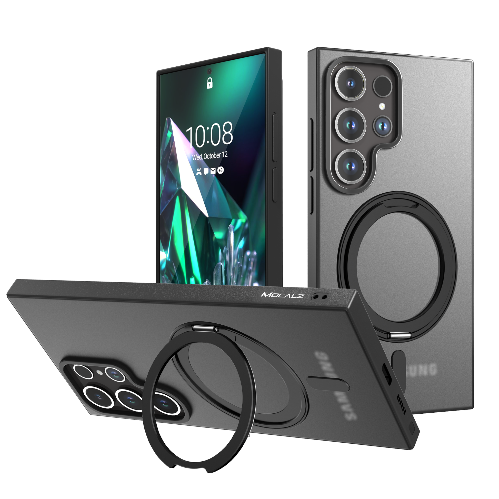 Mocalz Protector Series III Matte Phone Case with Metal Ring Kickstand for S24 Ultra. Hardcover TPU/PC, Anti-Drop, Scratchproof, Shockproof Case.